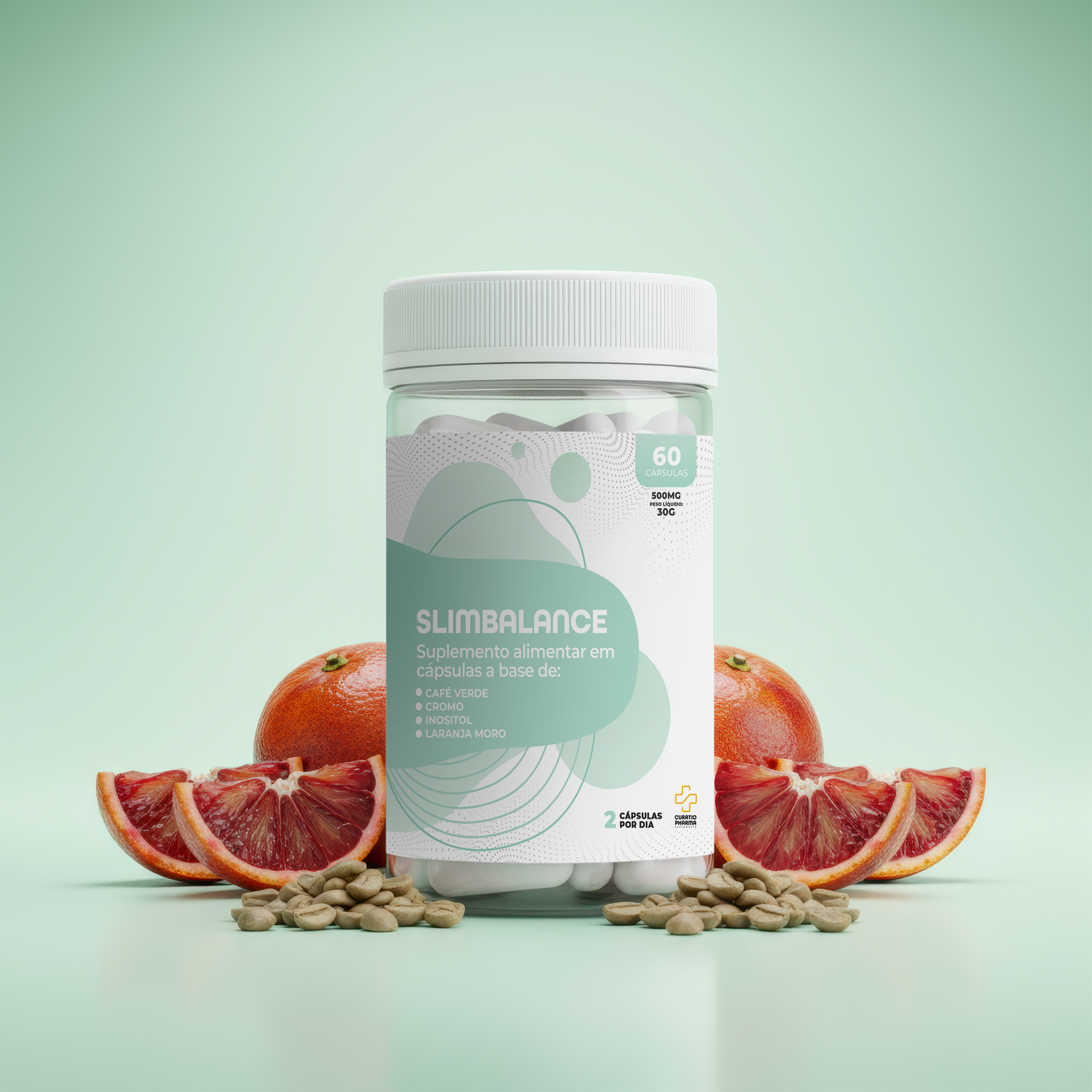 SlimBalance é um suplemento inteligente formulado com Laranja Moro, Café Verde, Inositol e Cromo — ativos naturais que atuam em sinergia para equilibrar o metabolismo, reduzir o acúmulo de gordura e ajudar no controle do apetite e da vontade de doces.