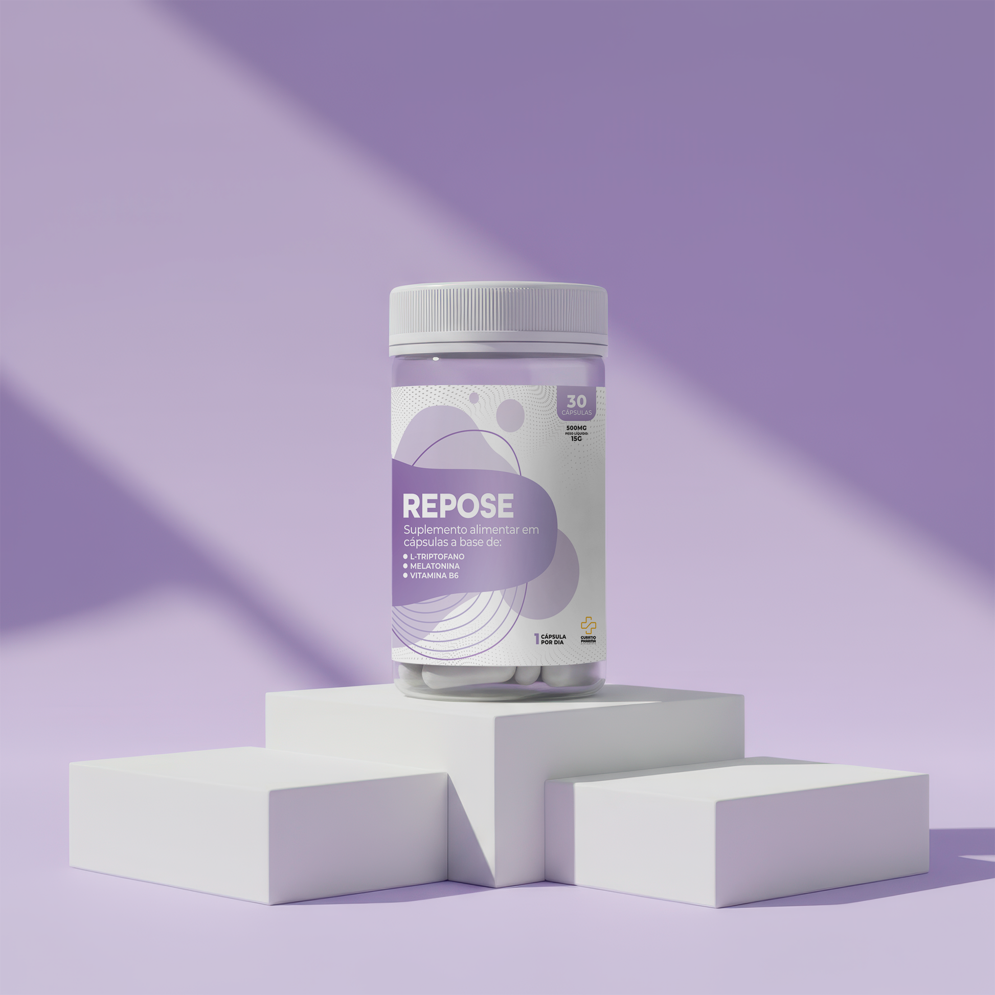O Repose foi desenvolvido para restaurar o ciclo natural de descanso, auxiliando pessoas que sofrem com dificuldade para dormir, ansiedade leve, insônia transitória e cansaço mental. Sua fórmula combina três ativos cientificamente reconhecidos pela ação sinérgica sobre o sistema nervoso: L-Triptofano, Melatonina e Vitamina B6. Juntos, eles estimulam a produção natural de serotonina e melatonina, equilibrando o relógio biológico e promovendo um sono profundo, contínuo e reparador — sem causar dependência ou sonolência residual.